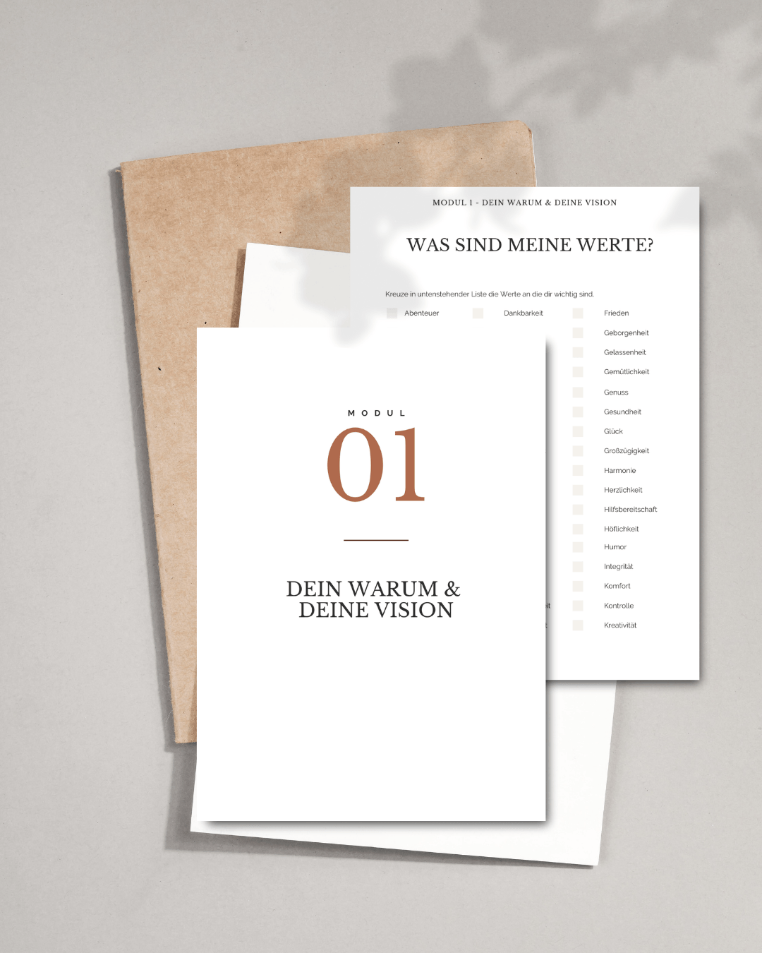 Damit du dir vorstellen kannst, wie der Kurs aufgebaut ist, zeigen wir dir einen kleinen Einblick in die Inhalte. Du bekommst ausführlich beschriebene Lektionen, hochwertige Arbeitsblätter und viele praktische Vorlagen, die dich sofort ins Tun bringen. Alles ist so gestaltet, dass du leicht folgen kannst – ruhig, strukturiert und praxisnah.