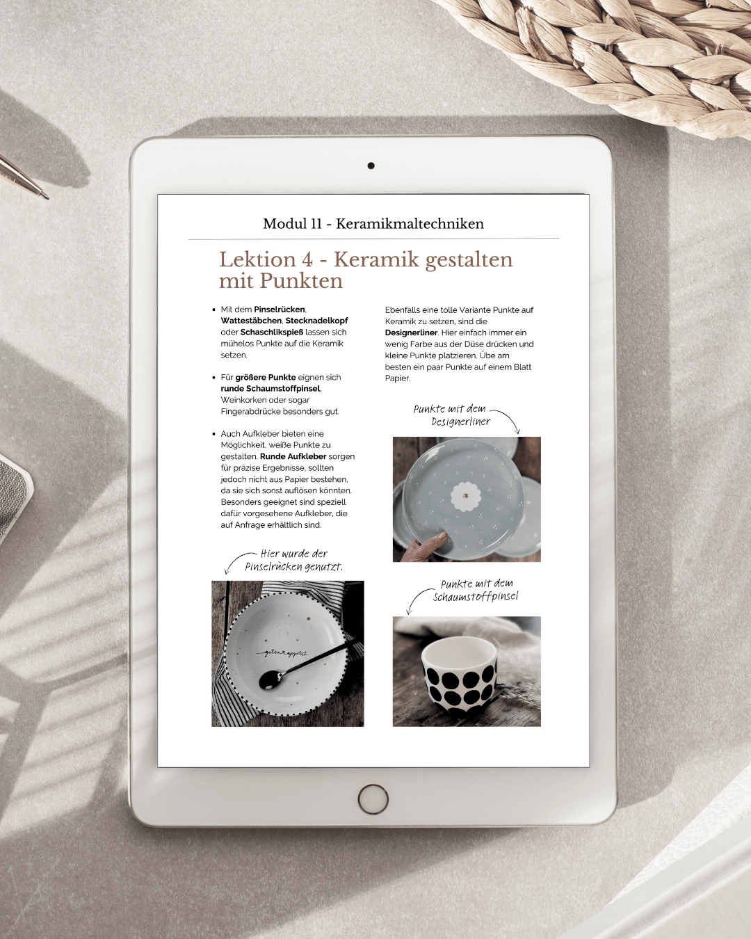Du lernst verschiedene Keramikmaltechniken kennen und erfährst, wie du sie sicher anleitest, welches Werkzeug dir dabei hilft und was du tun kannst, wenn beim Malen mal etwas daneben geht.