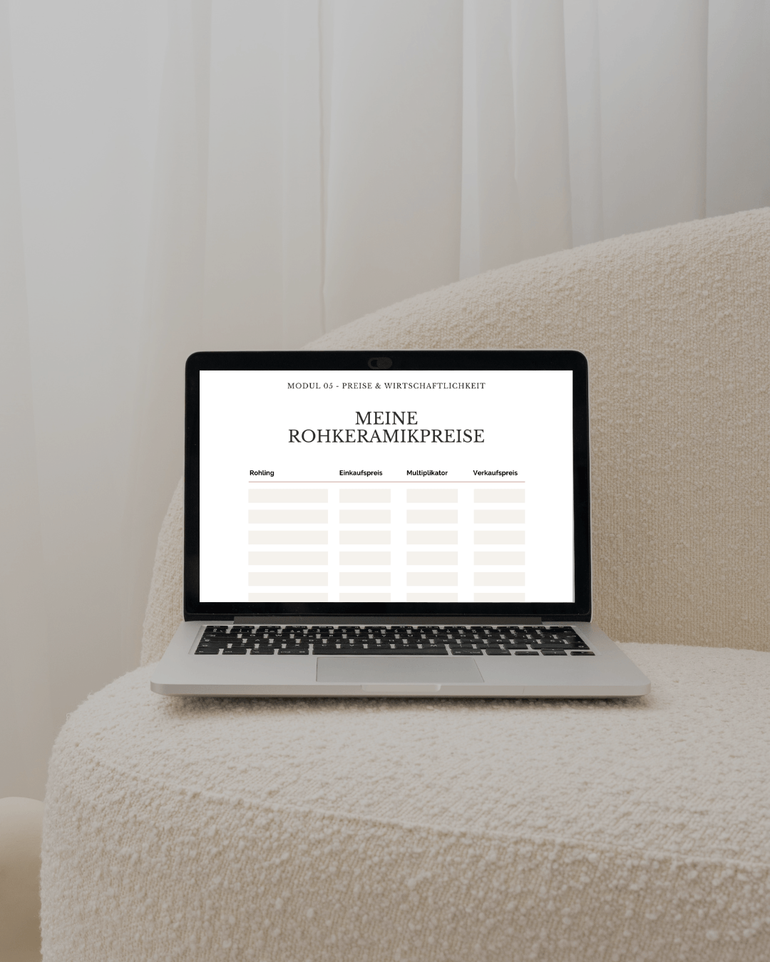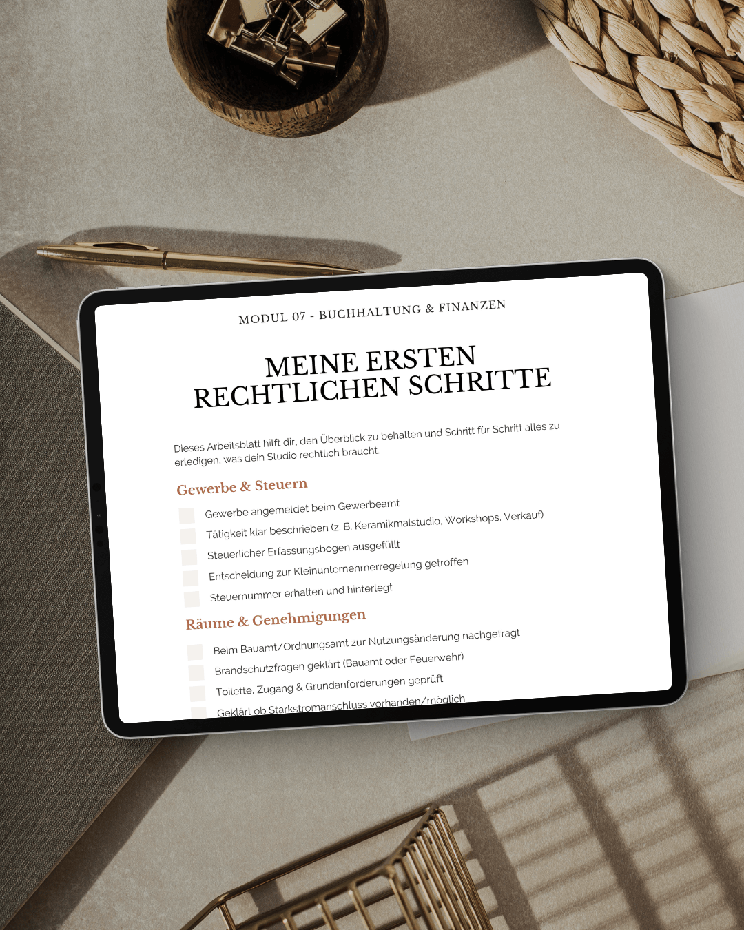 Preisrechner, Planungsblätter, Rohkeramik-Tabellen, Studio-Routinen und viele weitere Tools, die dir helfen, dein Studio sicher und strukturiert aufzubauen.
